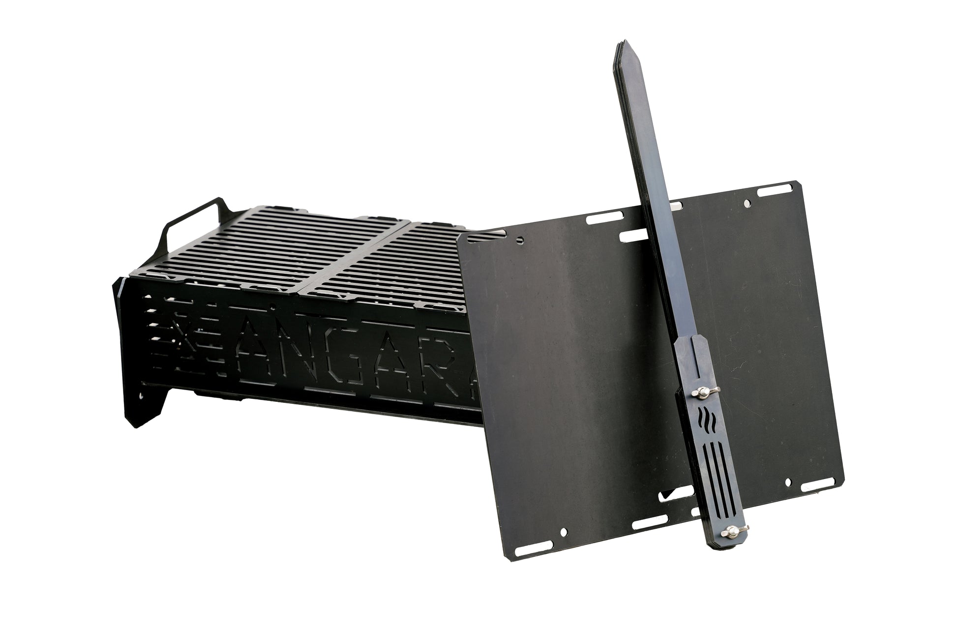 This bundle pairs the full-size TravX grill with its modular cooking accessories, giving you the flexibility to switch seamlessly between direct grilling, flat-plate cooking, and skewer-based BBQ.